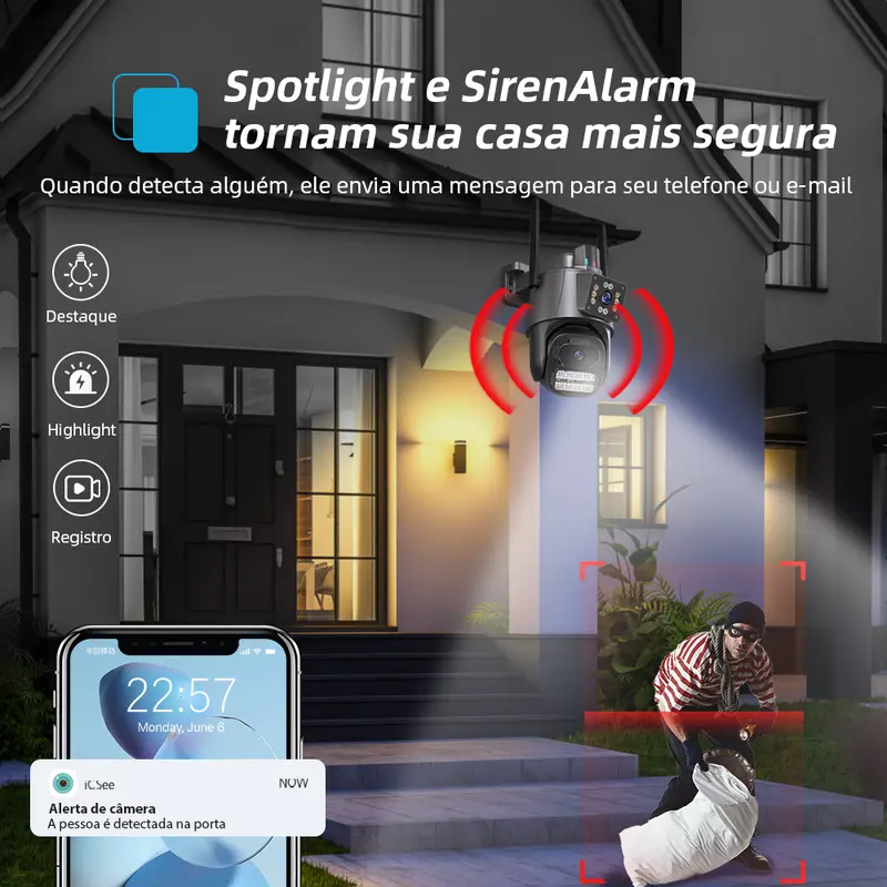 Câmera Wifi 4K com Luz Policial e Alarme – Segurança de Verdade Pra Sua Casa (Com Selo de Monitoramento 24h)
